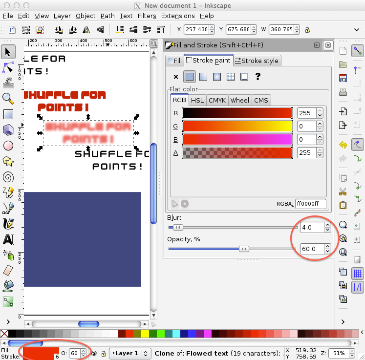 Now, create a background box with a color similar to what they will have as background in your game. Then create three clones of the original text.