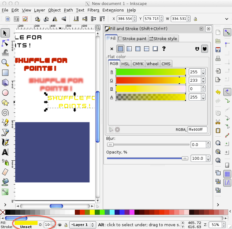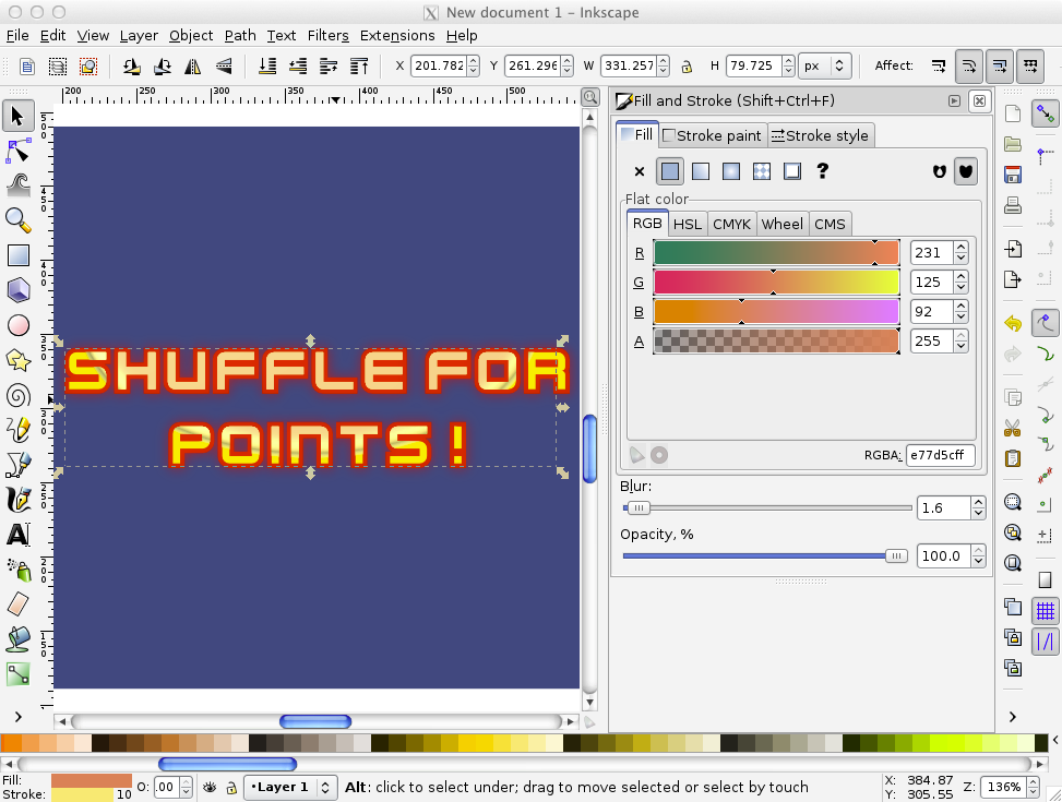 On Inkscape, create a text box at the top level part of the screen. Set a nice font for it, in my experience bold fonts look better (like Stencil Std and Bauhaus).