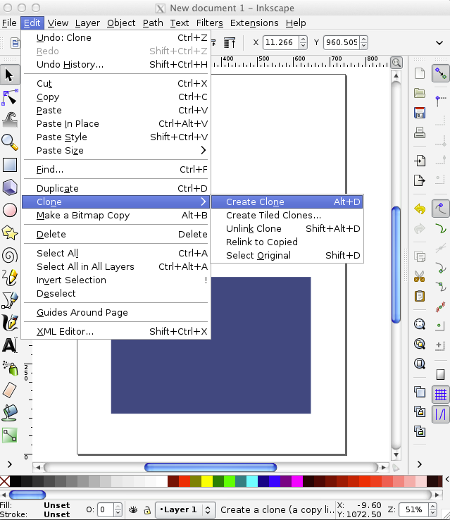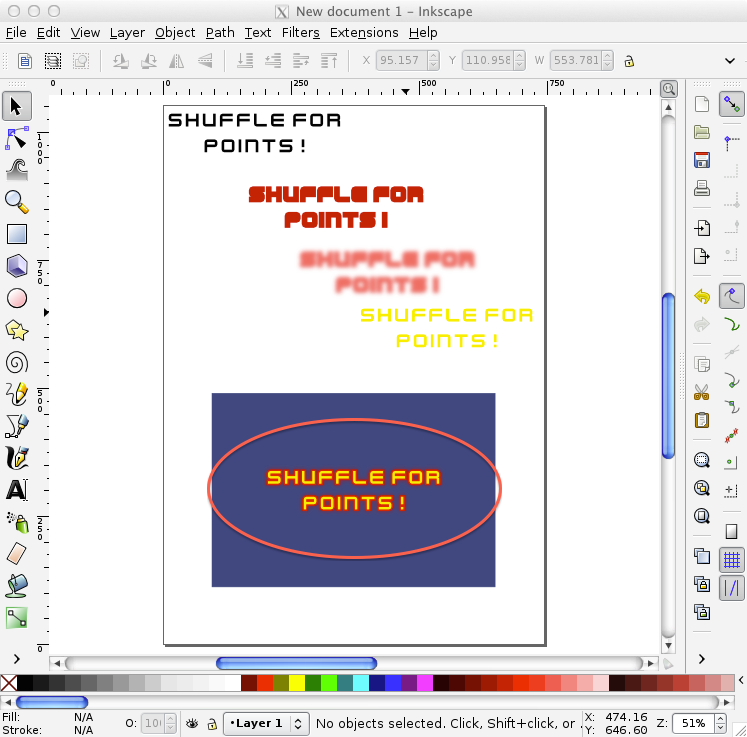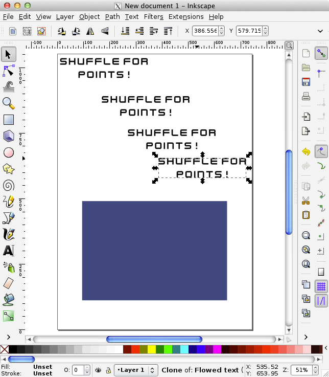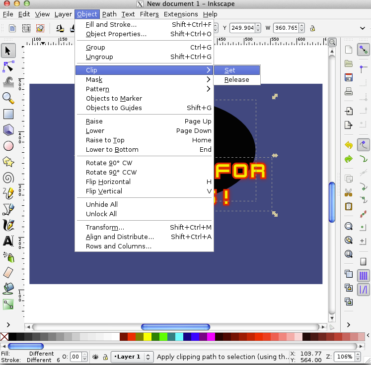 What we will do is replace the text with a nice image with colors and effects. We will be doing it the clever way too, using clones so that everything is derived from a single original object that can be modified afterwards.