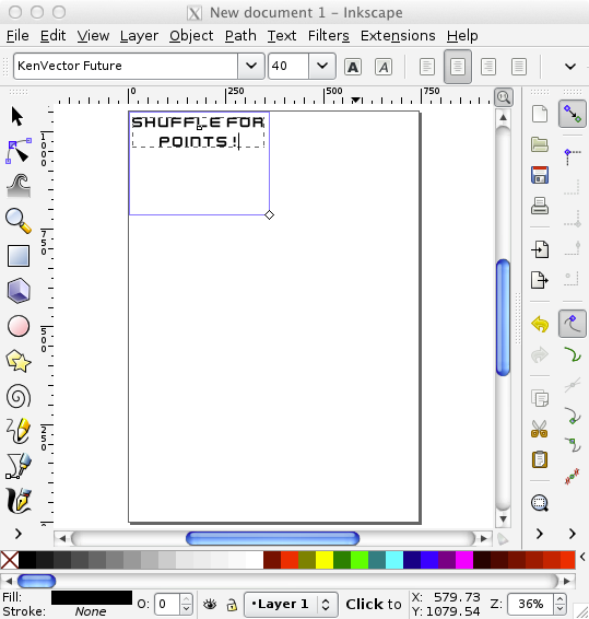 On Inkscape, create a text box at the top level part of the screen. Set a nice font for it, in my experience bold fonts look better (like Stencil Std and Bauhaus).