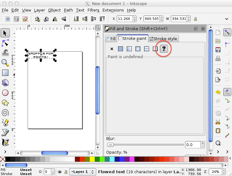 Now, open the Fill and Stroke settings dialog and mark both “Fill” and “Stroke paint” as unset (select the option marked as ‘?’).