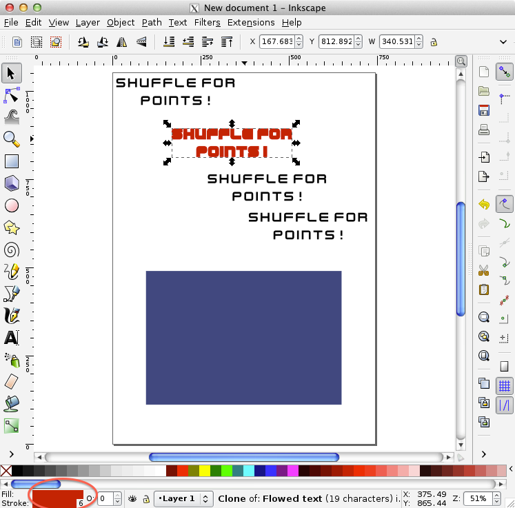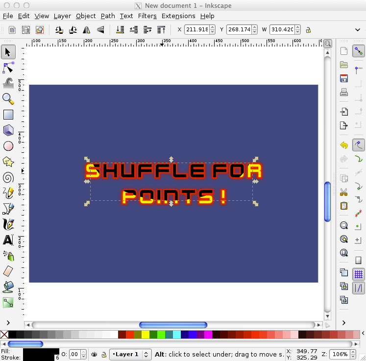 What we will do is replace the text with a nice image with colors and effects. We will be doing it the clever way too, using clones so that everything is derived from a single original object that can be modified afterwards.